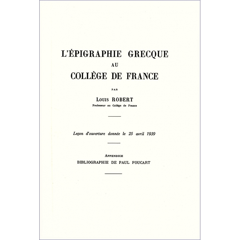 Leçon d'ouverture donnée le 25 avril 1939. Appendice. Bibliographie de Paul Foucard.