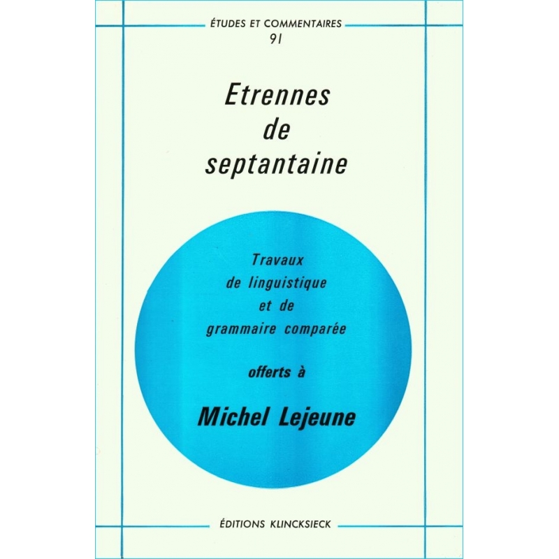• Pierre MONTEIL : Aoriste thématique et vocalismes anomaux en grec ancien. - Anna MORPURGO DAVIES : Thessalian ... and the participle of the verb « to be ».