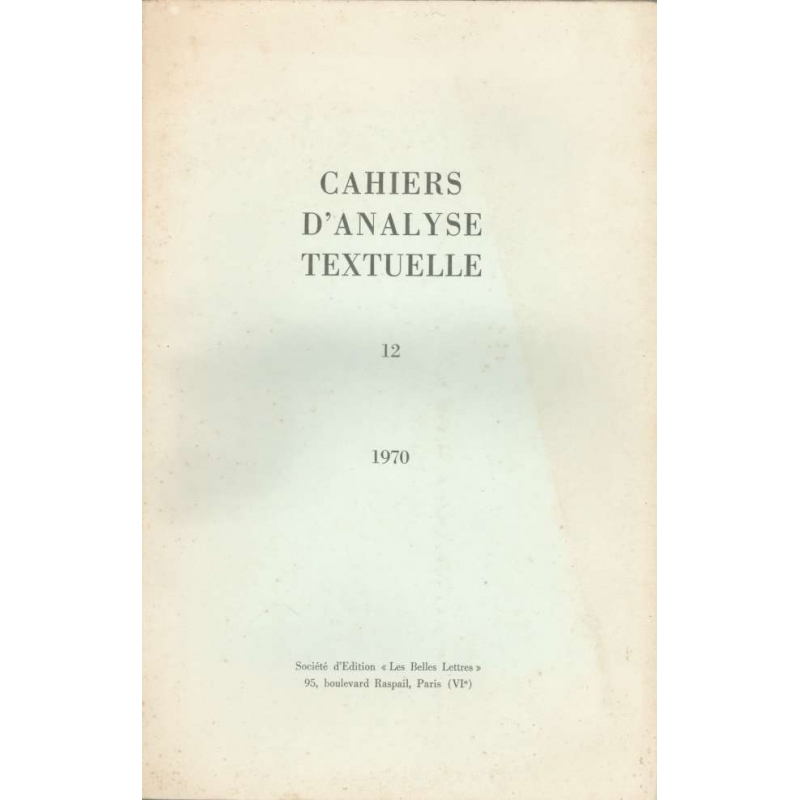 « Groupés autour du professeur Louis Remacle, continuateur de Servais Etienne, une vingtaine d'anciens étudiants de l'Université de Liège constituent depuis 1959 la rédaction des Cahiers d'Analyse Textuelle. Cette revue annuelle contient dans chacun de ses numéros (qui comptent de 110 à 140 pages in-8°) deux sortes d'éléments : des explications de textes et des articles de méthodologie ou de critique [...] ». In : Alain Lerond, « Cahiers d'Analyse Textuelle, n° 1-9 (1959-1967) », Langue Française, 1969, n° 3, p. 122-123.