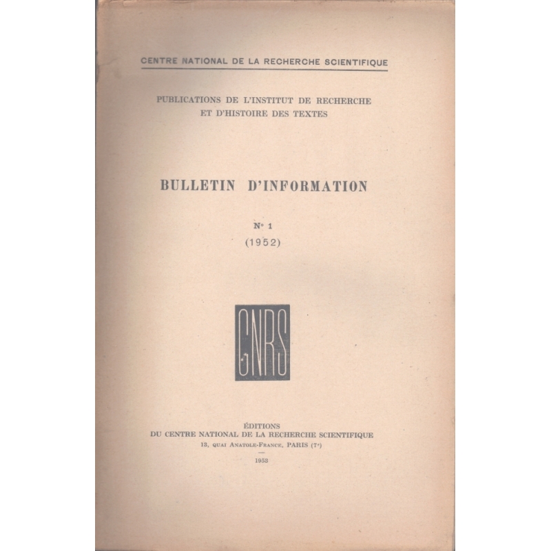 CNRS, 1953, 16 x 25, 80 pages, broché, occasion.
