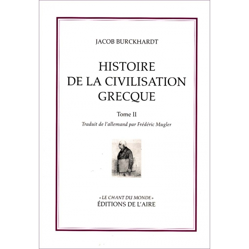 Passionné de l'Antiquité, il s'interroge sur le passage à l'ère chrétienne en publiant d'abord Le Temps de Constantin. Professeur d'histoire et d'histoire de l'art à Zurich puis à Bâle, il conçoit un guide de mille pages servant à l'appréciation des oeuvres d'art italiennes - texte qui annonce le suivant: La Renaissance et la culture italienne. Entre 1898 et 1902 juste après sa mort, ses disciples publient l'impressionnante Histoire de la culture grecque. Son approche critique et philosophique de l'hellénisme est proche de celle de Nietzche et son immense érudition donne à cette entreprise éditoriale ses lettres de noblesse.