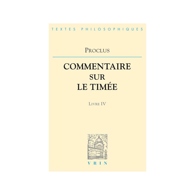 • Malheureusement nous n'avons conservé de ce volumineux travail que le premier tiers, soit cinq livres qui couvrent l'Introduction (Tim. 17a-27b, résumé de la République et mythe de l'Atlantide) et la première partie (Tim. 27c-47e, qui concerne le Monde en tant que création de l'Intellect, et les dix dons qu'il fait au Monde). Mais nous savons que Proclus avait commenté le dialogue entier puisqu'une partie de la fin (Tim. 89e-90c) a été retrouvée en arabe dans la traduction d'Hunain Ibn Ishaq.