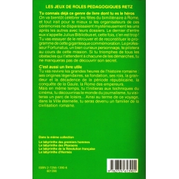Tu connais déjà ce genre de livre dont tu es le héros. On va bientôt célébrer les fêtes du bimillénaire à Rome, et tout irait pour le mieux si les organisateurs de ces cérémonies ne disparaissaient mystérieusement les uns après les autres avec leurs dossiers. Le dernier d'entre eux s'appelle Julius Bibliobus et, cette fois, c'en est trop ! Tu vas essayer de le retrouver et de reconstituer le programme de cette gigantesque commémoration. Le professeur Fortunatus, un bien curieux personnage, te piloteras au cours de cette mission. Si tu triomphes de tous les obstacles qui t'attendent à chacune de tes démarches, tu ne manqueras pas de découvrir son secret.