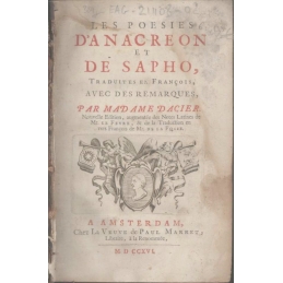Traduites en François, avec des remarques, par Madame Dacier. Nouvelle édition, augmentée des Notes Latines de Mr Le Fevre, & de la Traduction en vers françois de Mr. De La Fosse.