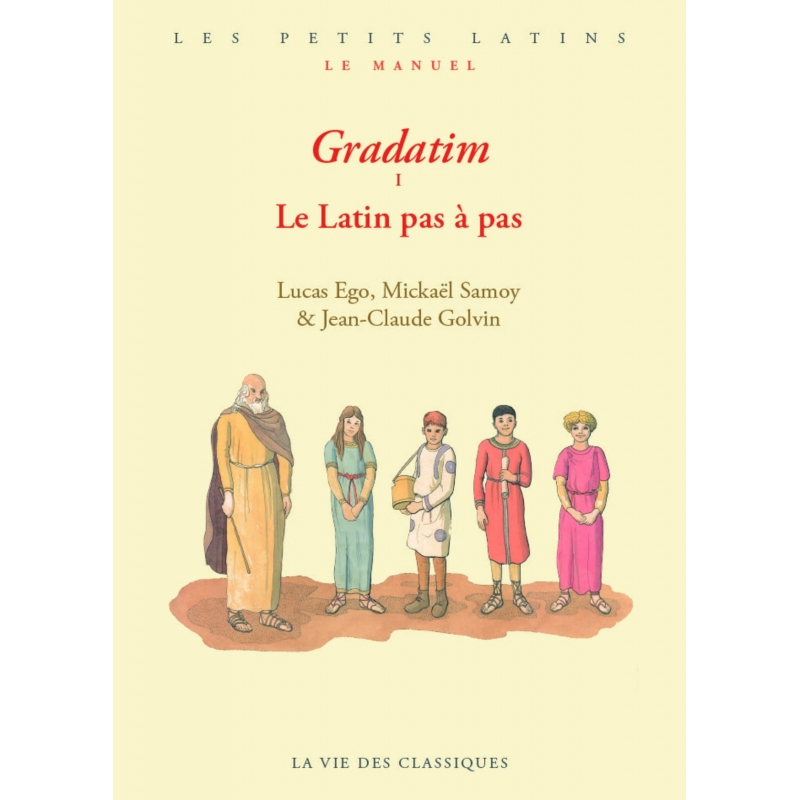 Adapté aux programmes, ajusté au volume horaire imposé en classe et destiné à toute personne désireuse de s’initier ou de rafraîchir son latin en plus de ses activités quotidiennes, Gradatim permet au débutant d’avancer pas à pas, seul ou accompagné d’un professeur, dans la connaissance de la langue et de la culture latines. Aux côtés du magister Lucius et de Publius, Claudia, Titus et Aemilia, ses quatre discipuli au caractère bien trempé, plonge dans la vie quotidienne romaine grâce aux splendides illustrations de Jean-Claude Golvin et découvre les origines de Rome à travers des textes en latin qui suivent ta progression. Avec Gradatim, festina lente : hâte-toi lentement !